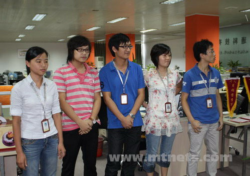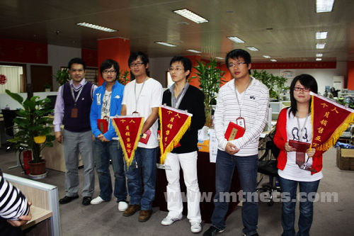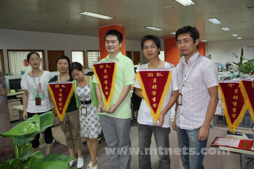 曹 林、虞巧巧、吳貴松、胡蓮華、沈凱凱五位銷售精英獲得明通公司09年7月個人業(yè)績獎,其中前三名被授予流動錦旗。