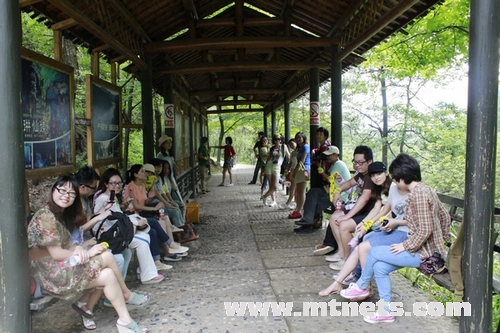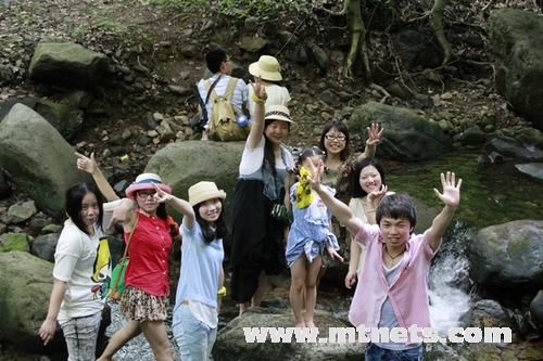 站在山腳,抬眼望去一片綠海。入景區(qū)門,綠樹掩映,修竹深深,心情亦隨之寧?kù)o;過(guò)金牛潭,入青春世界,童趣玩樂(lè),興致盎然。沿溪行,溪澗頑石累累,大小不一,形態(tài)各異,千奇百怪。拾級(jí)而上,山勢(shì)平緩,峰巒疊翠。時(shí)有索橋掛于溪流之上,下有碧潭,深不見底,水色似翡翠,如瑪瑙,纖毫畢現(xiàn),嘆為奇觀。山頂龍?zhí)镀俨硷w流直下,蔚為壯觀,置身其下,涼意襲身,愜意無(wú)比。登高遠(yuǎn)眺,山道蜿蜒,梯田青青,屋舍依疏,美不勝收。下山時(shí)有滑鼠可坐,5車連成一組,沿鐵軌滑下,中有彎道,速度極快,尖叫中雙手緊拉手剎,驚險(xiǎn)刺激。雖下車時(shí)或覺(jué)腿軟,但也不失為一次難忘的經(jīng)歷。