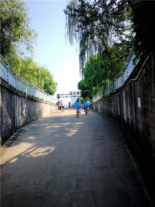 出發(fā)了,一共有七個打卡,星耀城、吉利、鑫都匯、白馬湖、網(wǎng)易、阿里和中南。七點四十分出發(fā)還好,天氣還不算熱,大家爭先恐后出門